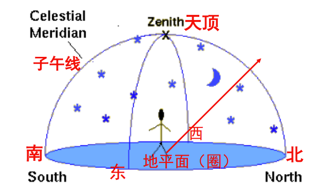 天顶、子午线与地平面组成一个固定不变的关系(地平坐标系)